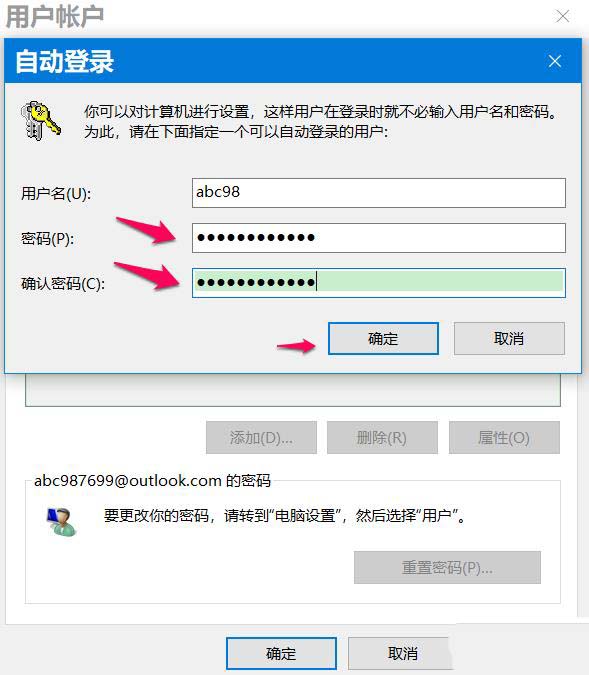 在弹出的 自动登录 对话框中,我们输入原登录密码,点击:确定。