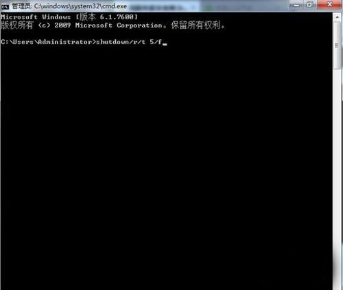 五、继续输入“shutdown /r /t 5 /f”,按Enter键,电脑系统就开始重启了。
