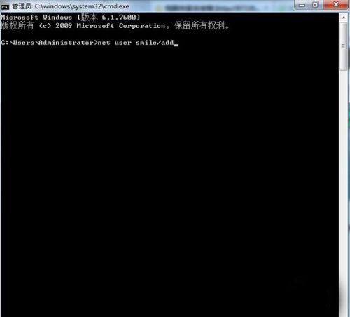 四、再输入“net localgroup administrators Smile /add”,意思是把刚才创建的新账号升级为管理员(作用是获得最高权限有权随意更改用户)。