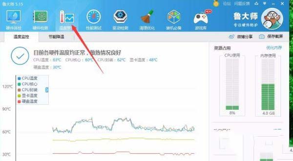 1,用鼠标点击“温度管理”,跳转到一个新源的界面中去,这个里面有很多温度的参数