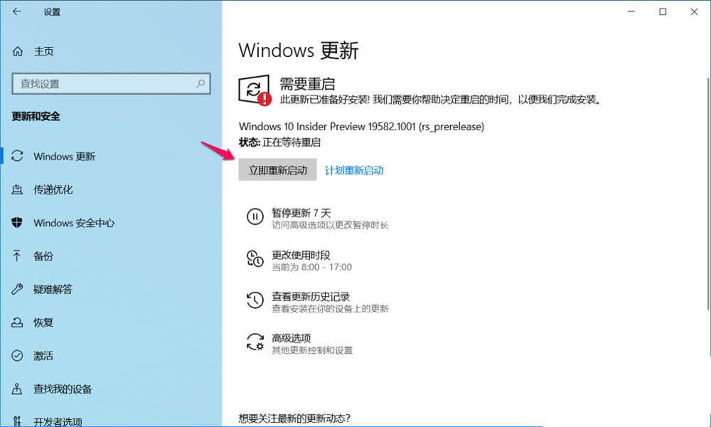 以上就是Win10预览版19582手动更新升级的技巧,希望大家喜欢,请继续关注脚本之家。