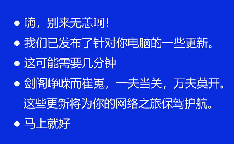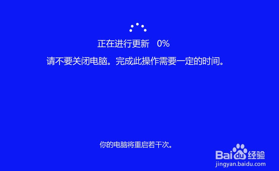 计算机第四次重启后,先进行系统更新后的后续操作,共显示五个界面: