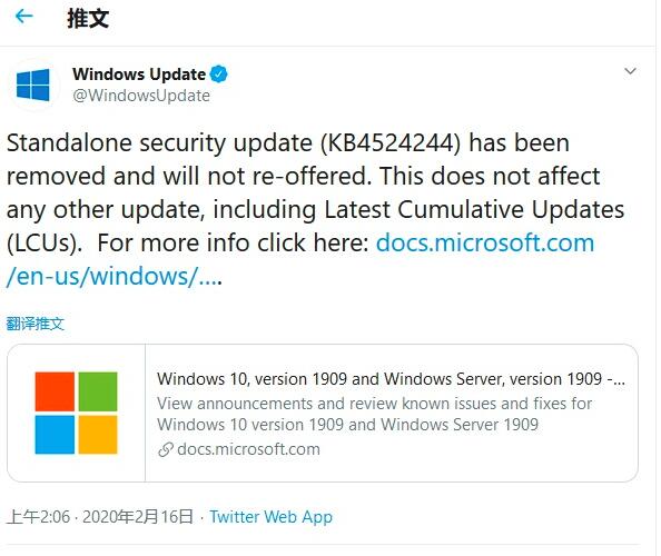 2月11日,Windows 10 KB4524244周二发布后,许多用户反映该安全修补程序会导致多种问题。IT之家获悉,在用户报告了包括系统故障在内的关键问题后,微软暂停了Windows 10 KB4524244的发布。