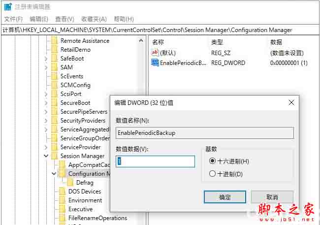 4. 双击“EnablePeriodicBackup”,将其赋值为“1”;