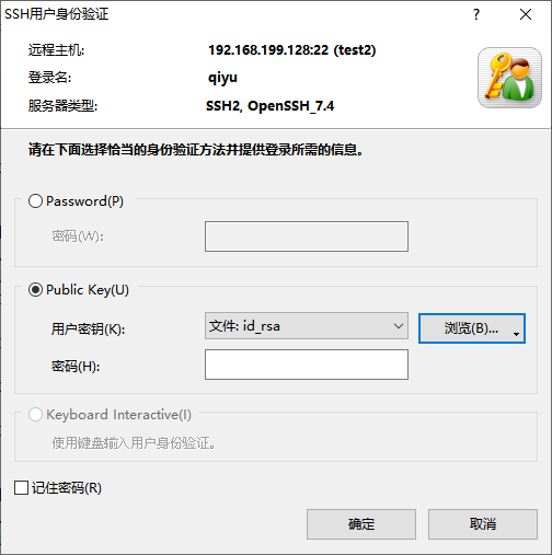 如上图,选择Public Key,用户密钥浏览文件,选择刚才生成的密钥另外一个id_rsa,如果刚刚生成密钥是是默认操作,没设置密码,密码项就为空。确定即可连接成功。