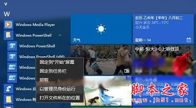 1、点开开始菜单,接着点击所有程序,找到并点开PowerShell,右键单击,选择“以管理员运行”。