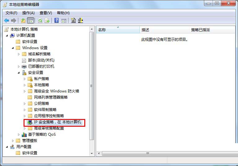 1、在“开始”菜单选择“运行”,输入“gpedit.msc”后回车,打开本地组策略编辑器。依次展开“计算机配置---windows设置---安全设置---ip安全策略,在 本地计算机”。