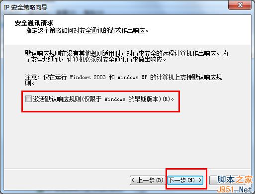 2、在本地组策略编辑器右边空白处 右键单击鼠标,选择“创建IP安全策略”,弹出IP安全策略向导对话框,单击下一步;在出现的对话框中的名称处写“关闭端口”(可随意填写),点击下一步;对话框中的“激活默认响应规则”选项不要勾选,然后单击下一步;勾选“编辑属性”,单击完成。