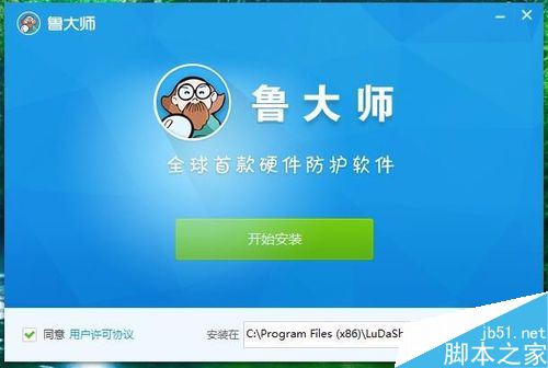 双击安装包,勾选 “同意用户许可协议”,然后点击开始安装,鲁大师。等待安装的完成。