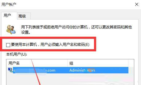 3、在“用户账户”的属性,取消“要使用本机,用户必须输入用户名和密码(E)”的勾选,然后按下“确定”