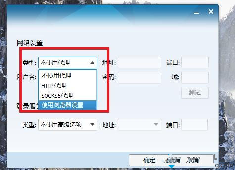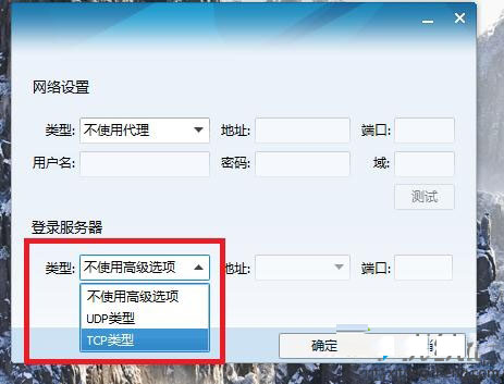 3、在登录服务器的类型里面可自由选择服务器类型试试;