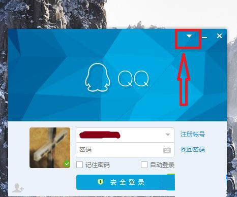 1、打开qq登录页面,点击右上角红圈圈出的部位;