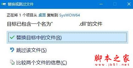 3、win10 64位的系统将该文件复制到:C:\Windows\SysWOW64路径中,win10 32位的系统将该文件复制到C:\Windows\System32 路径中(在弹出的提示框中选择“替换目标中的文件”即可);