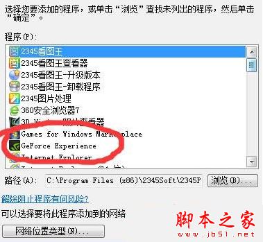 5、在程序框中选中“GeForce Experience”,然后点击“添加”;