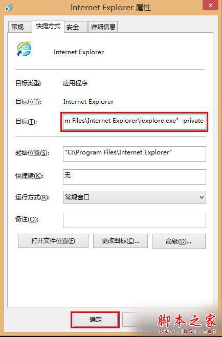 2.在目标位置在最后面添加 “ private”(不包括引号,且private前有一个空格),点击确定。