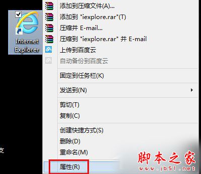 1.右击 IE快捷方式图标,选择属性。