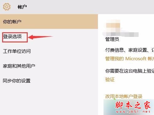 4、在账户选项卡中,选择“登录选项”,单击进入设置;