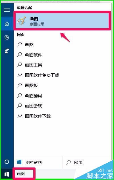 在系统左下角的搜索栏输入【画图】,点击:画图 - 桌面应用,启动系统自带的画图程序;