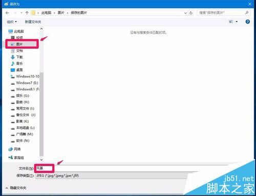 在打开的保存为窗口,点击窗口左侧的【图片】,在文件名(N)栏输入图片的名称,再点击:保存,则画图软件中扩大或缩小的图片(照片)就已经保存好了。