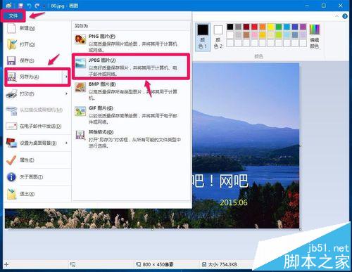 点击【文件】 - 【另存为(A)】-【JPEG图片(J)】(可选择保存照片图片的类型);