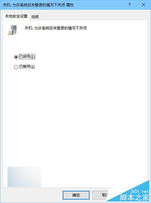 3、双击打开该项目,然后选择“已启用”就可以在登录界面右下角看到电源键图标,选择“已禁用”就会取消该图标显示,如下图——