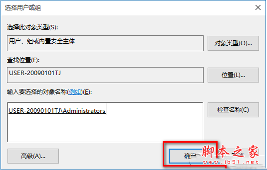 7、点击确定以后,我们可以看到本机登录用户名显示在检查名称栏中,点击:确定;