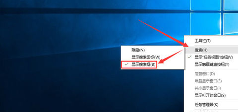 3、然后我们在点击“搜索”后的那个小子菜单中查看“搜索”前面是否被打勾,如果打勾了,那么我们点击“搜索”上面的“隐藏”。否则请放弃此方法!