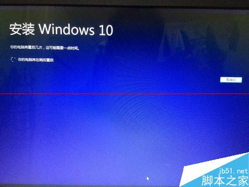 9、接着就重启,此时可以看到关机界面还是WIN7的,接下来启动时候就是WIN10界面了,升级继续ING