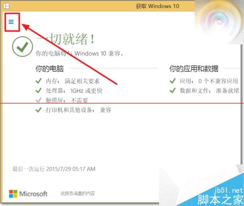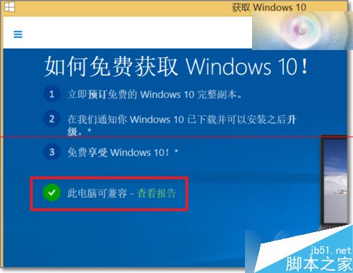 2、决定要不要升级Win10,用户也经过决策的,如自己电脑配置,电脑使用的软件程序,在升级Win10以后还可以使用吗,在这里我们可以查看Win10对你电脑检测出的兼容性报告。