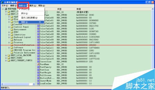 7、【注册表编辑器】的窗口,选择”查看“这一项,按F5刷新,看命令提示符是否显示中文。