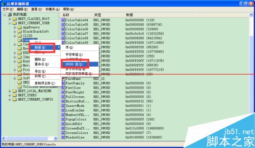 5、然后鼠标右键点击“Console“选择“新建”,点击“DWORD值。