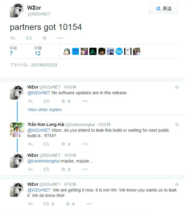 Windows 10 RTM正式版已经近在眼前,微软会不会再公开放出一个预览版,让大家最后体验一把呢?不好说,但毫无意外,新版本随时都在诞生,每一步都在逼近正式版。俄罗斯曝料大神WZor刚刚在推特上透露,微软的合作伙伴们已经拿到了Windows 10 Build 10154。WZor随后表示,它不是最终的RTM正式版,而是一个预发布版本,而且没有任何软件更新,说明只是继续修复Bug。