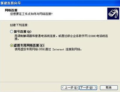 单击“下一步”,选择网络连接方式为“虚拟专用网络连接”;