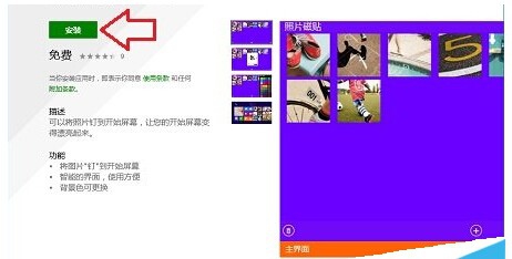 3、在照片磁贴窗口,点击“安装”,接下来会出现一个下载进度提示条,下载完成后会自动安装,这一切都不需要我们参与。