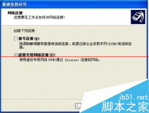 4、选择“虚拟专用网络连接”,点击“下一步”