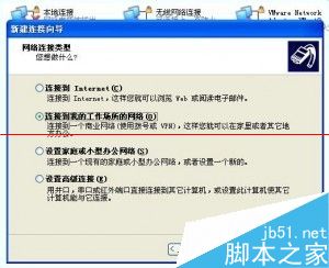 3、选择“连接到我的工作场所的网络”,点击“下一步”