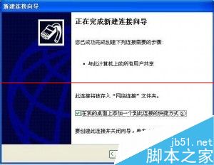 7、为方便以后快速找到它,请勾选“在我的桌面上添加一个到此连接的快捷方式”,再点击“完成”