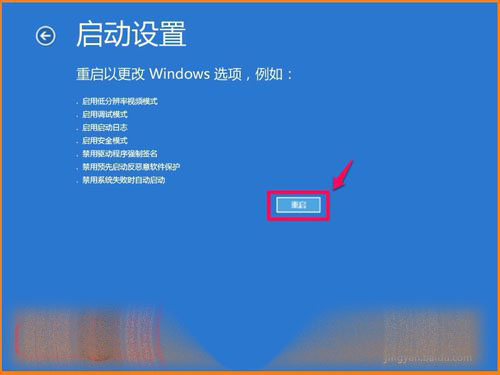 9、点击重启后,计算机重新启动进入启动设置对话窗口,在这个窗口:如果我们要进入一般的安全模式,按键盘上的数字键4;要进入带网络连接的安全模式,按键盘上的数字键5;要进入带命令提示符的安全模式,按键盘上的数字键6;