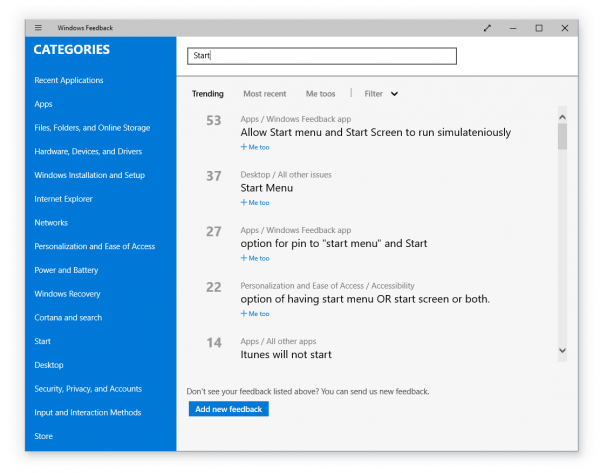 Windows Feedback和Insider Hub应用:这两款应用已经得到了改善,你能够根据推荐过滤你的反馈,并直接从搜索结果增加“Me too”(我也赞成)的选项。应用的整体性能得到进一步改善,在Feedback Hub上访问“Your Progress”页面追踪你有多少的贡献。