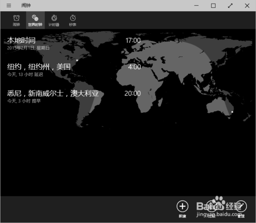 点击“世界时间”-->“新建”-->输入城市名称-->回车。