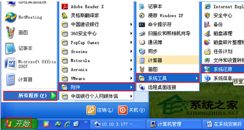 方法一:WinXP自带系统还原功能,前提是之前有过进行系统备份,使用自带功能将系统还原到某一个还原点,注册表也将随整个系统一起恢复。