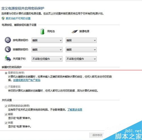 注意事项:开启快速启动须开启休眠功能。