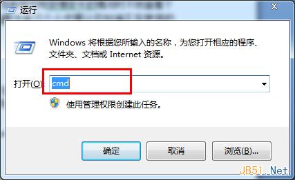 按照方法一使用快捷键“win+r”打开运行窗口,在运行窗口中输入“cmd”然后按下回车键;如下图所示: