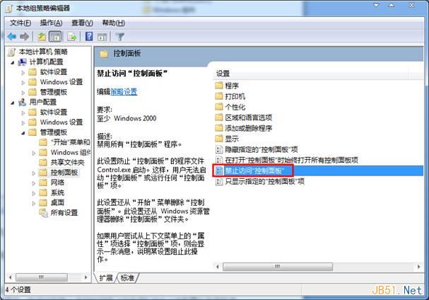 4.接着双击右边的“禁止访问控制面板”选项;如下图所示: