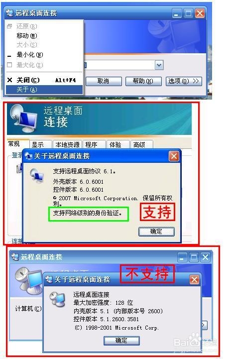 检查你的xp系统是否正在运行具有网络级身份验证功能的远程桌面版本