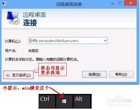 在弹出的对话框中,输入远程设置好的win8计算机的名称或ip地址,就可以开始远程访问win8桌面了。