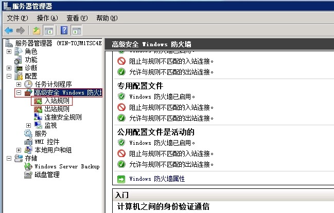 1. 打开服务管理器》高级安全Windows防火墙》如站规则