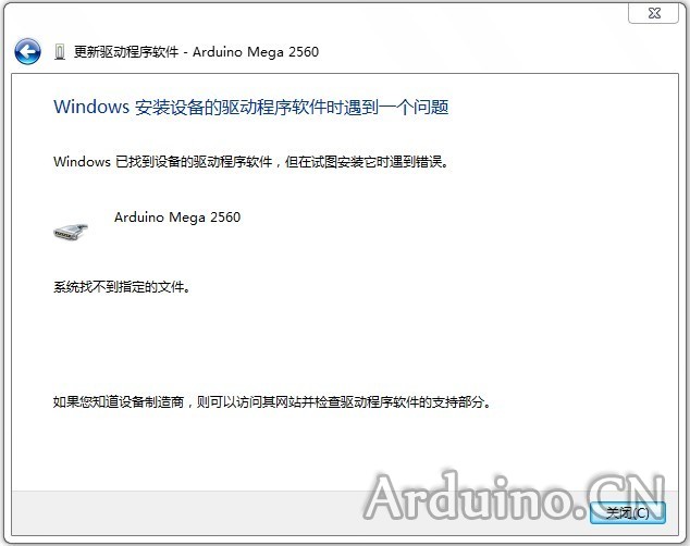 如果你使用的是精简版windows系统,安装Arduino驱动时,可能会遇到"系统找不到指定文件"这个问题,如下图: