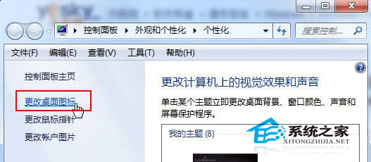 其实这是因为Win7系统当前的设置状态为“允许主题更改桌面图标”,只要找到这个设置,修改成“不允许主题修改桌面图标”状态,Hold住个性化图标设置就可以了。