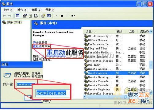 要解决这个故障,我们需要启动Remote Access Connection Manager与Network Connections及Telephony服务。我们可通过两种方法启动服务: